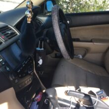 Upgrade your car’s feel with a flash of style by covering your steering wheel with this rhinestone-covered wheel cover that captivates with a black-and-silver color scheme that fits any vehicle.